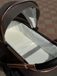 У люльці є м'який матрацик, секції для вентиляції та підтримання стабільного мікроклімату за будь-якої погоди.